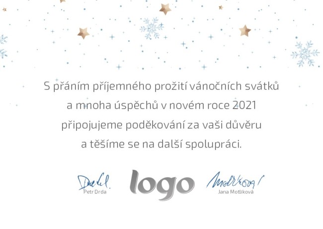 Toto vánoční přání je otevírací ve formě knížky (s textem přání a logem uvnitř). Přání je do obálky C6. Námi vyráběné novoročenky a vánoční přání jsou tištěny na kvalitním 300g křídovém papíře.