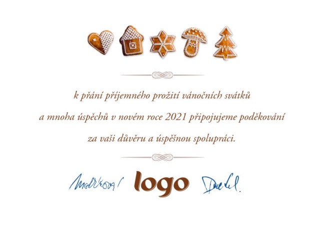 Toto vánoční přání je otevírací ve formě knížky (s textem přání a logem uvnitř). Přání je do obálky C6. Námi vyráběné novoročenky a vánoční přání jsou tištěny na kvalitním 300g křídovém papíře.